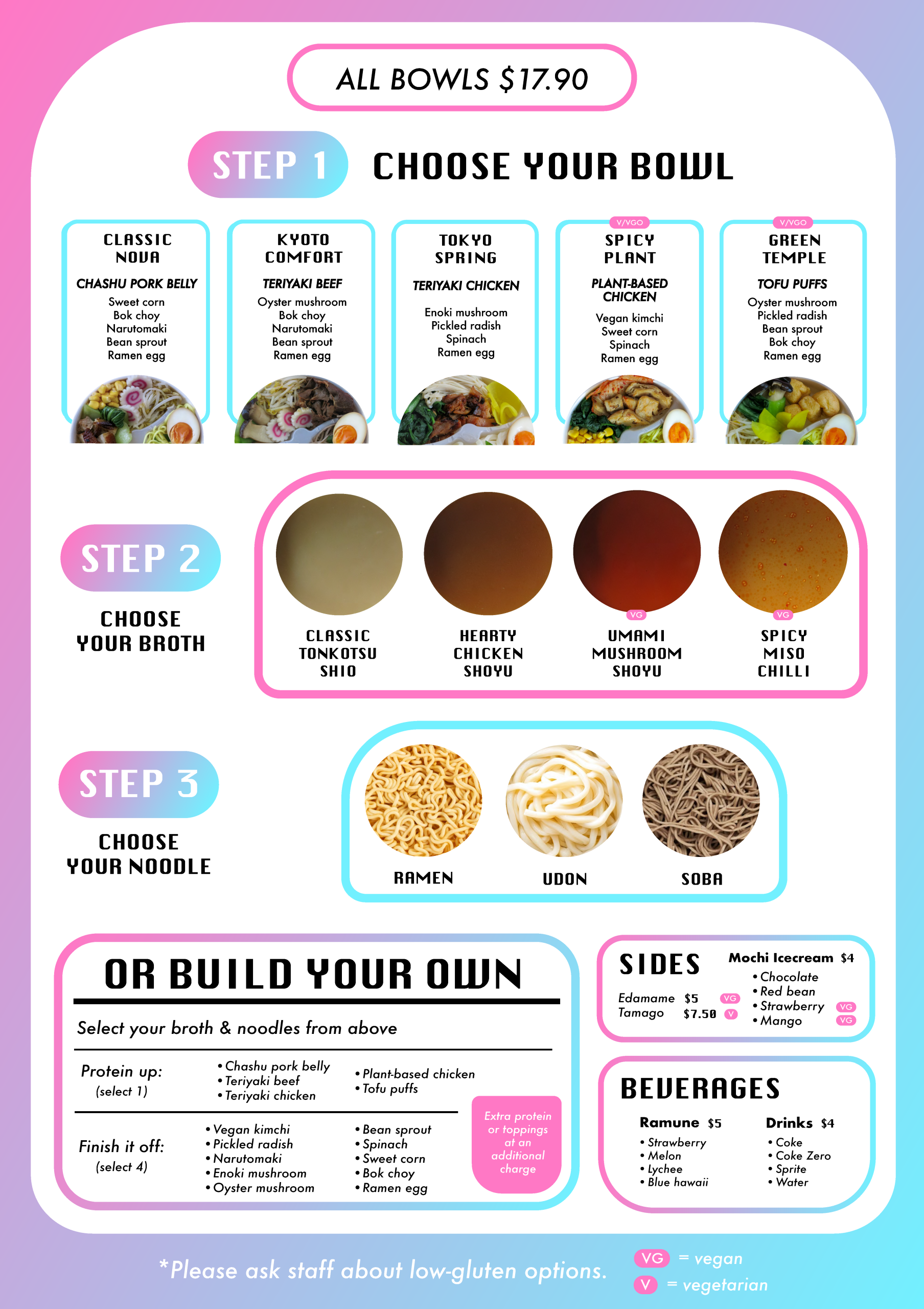 Ramenova is designed for life on the go – perfect for busy office days when you’re stuck on what to eat, or those moments you’re racing to make your next class